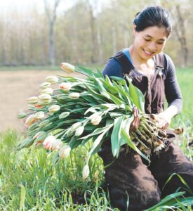 Tracy Yang is a Hmong-American flower farmer based near Monroe, Washington, and co-founder of JARN Co. Flowers with her partner, Nick Songsangcharntara. She shifted from a career in fitness and dance into farming during the pandemic, reconnecting with her family’s agricultural roots. Their farm specializes in tulips and heirloom dahlias, grown using sustainable practices and sold through CSAs, the Seattle Wholesale Growers Market, and local shops and pop-ups. Tracy also founded the SnoCo. Flower Collective, which brings together regional growers and hosts a weekly summer flower market to strengthen community connections.