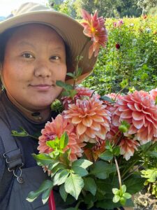 Tracy Yang is a Hmong-American flower farmer based near Monroe, Washington, and co-founder of JARN Co. Flowers with her partner, Nick Songsangcharntara. She shifted from a career in fitness and dance into farming during the pandemic, reconnecting with her family’s agricultural roots. Their farm specializes in tulips and heirloom dahlias, grown using sustainable practices and sold through CSAs, the Seattle Wholesale Growers Market, and local shops and pop-ups. Tracy also founded the SnoCo. Flower Collective, which brings together regional growers and hosts a weekly summer flower market to strengthen community connections.